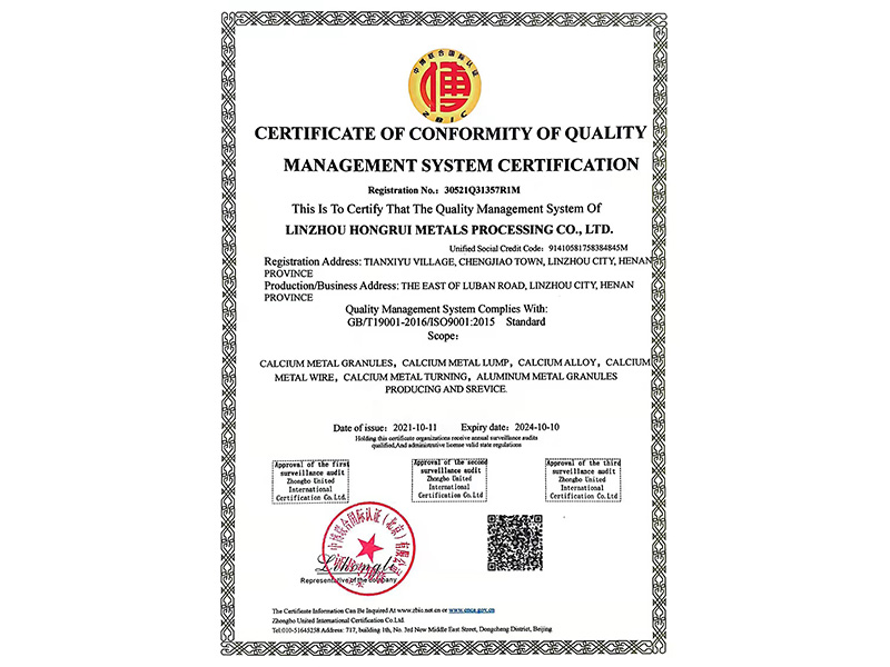 質(zhì)量管理體系認(rèn)證證書(shū)英文版